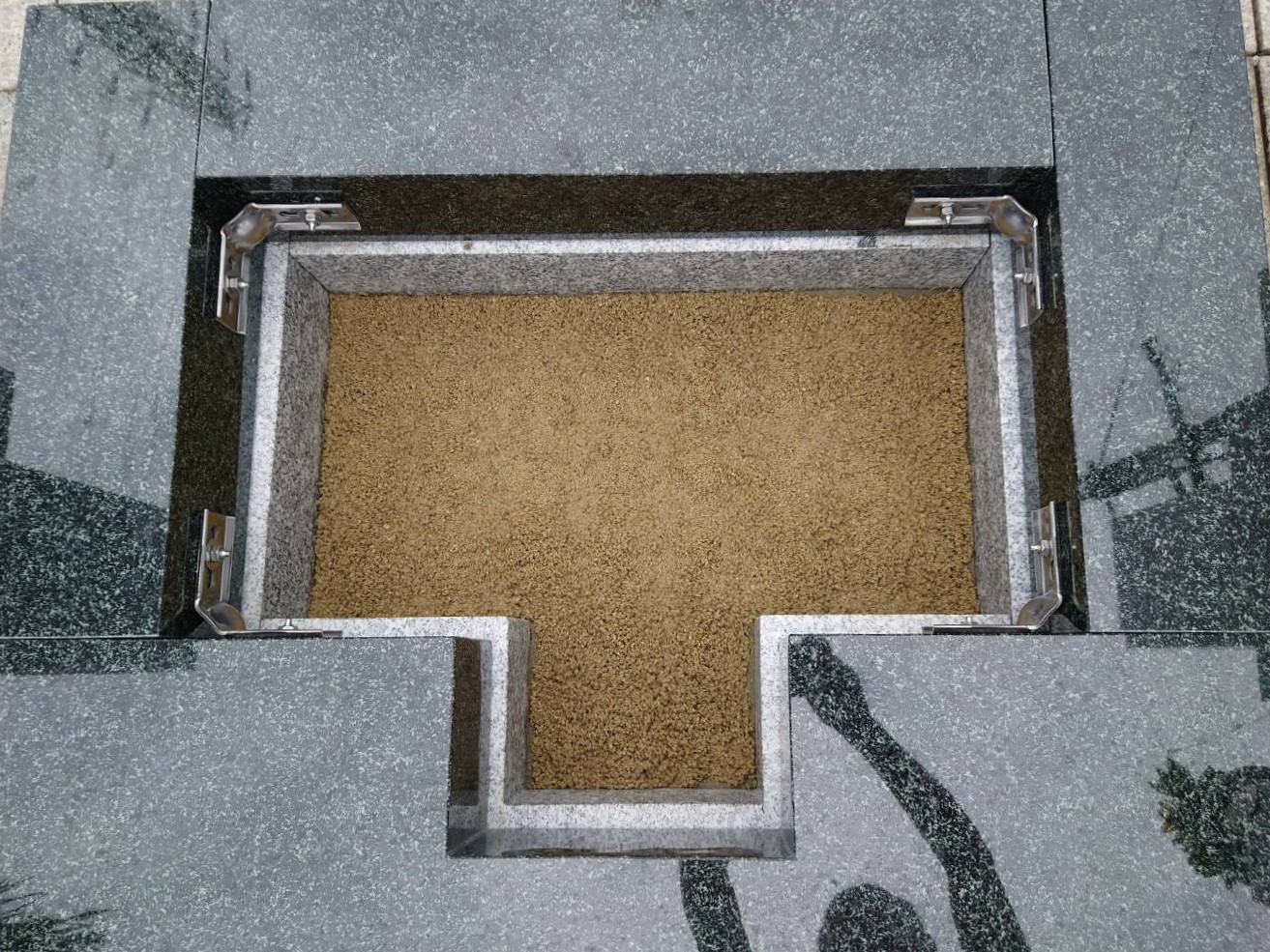『泉大津公園墓地(板原墓地)』にて黒御影石M1-H石の洋型石碑が完成。地震対策『泰震』施工で地震対策もバッチリ。立体彫刻で煌びやかに。