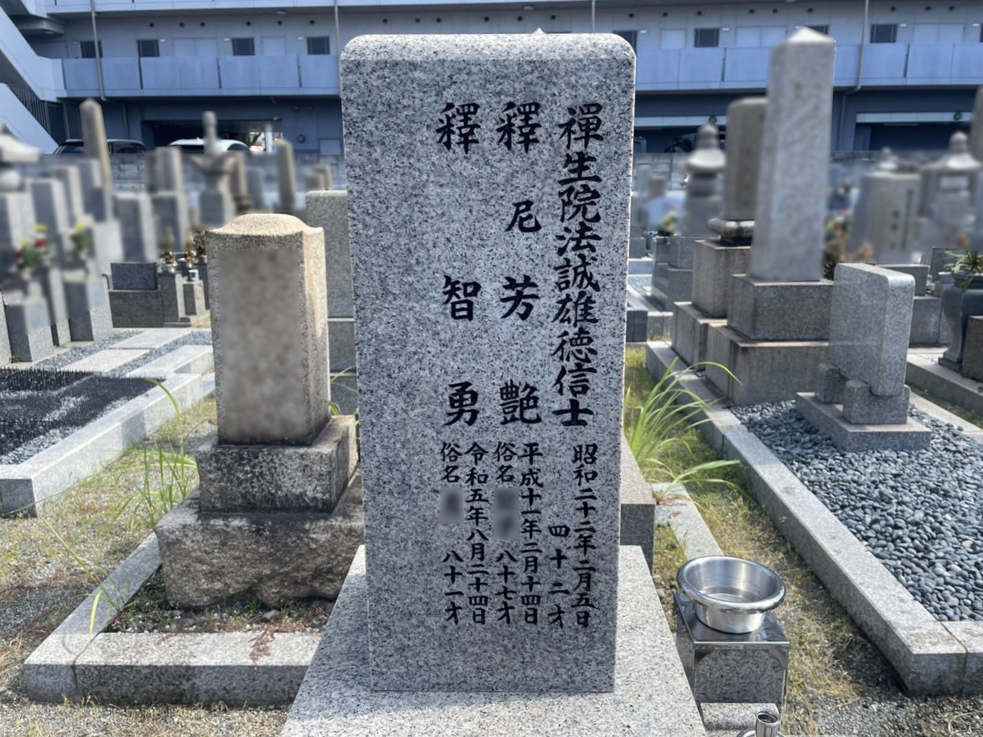大阪市住之江区 南加賀屋霊園|追加彫刻(戒名彫刻)+石碑クリーニング・防草工事 施工事例