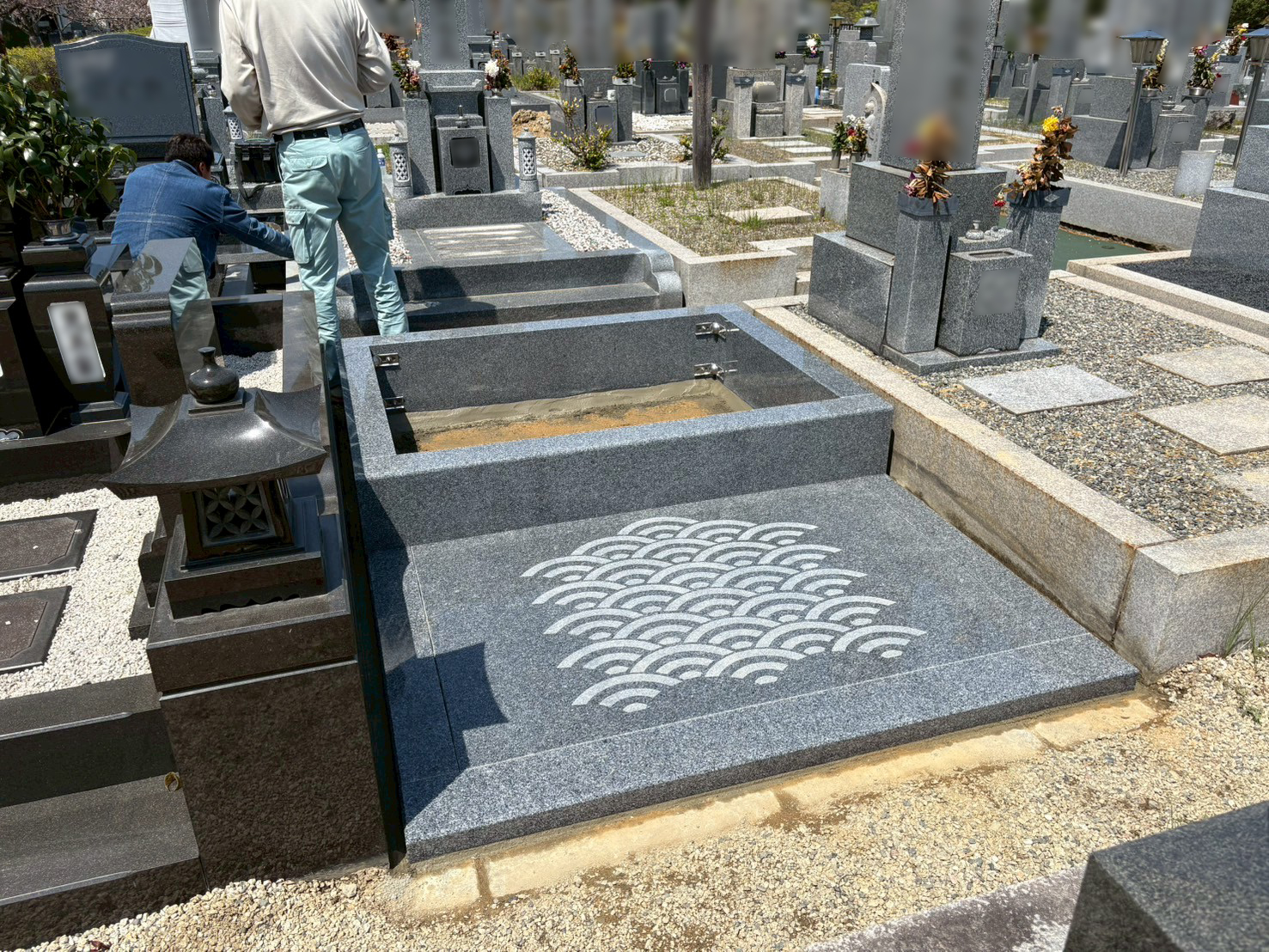 『堺市霊園(鉢ヶ峰霊園)』にて黒龍K12特級石のお墓が完成。地震対策『泰震』施工で地震対策もバッチリ。バリアフリー型外柵にベンチもついて。