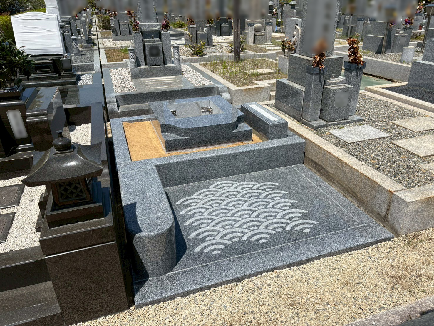 『堺市霊園(鉢ヶ峰霊園)』にて黒龍K12特級石のお墓が完成。地震対策『泰震』施工で地震対策もバッチリ。バリアフリー型外柵にベンチもついて。
