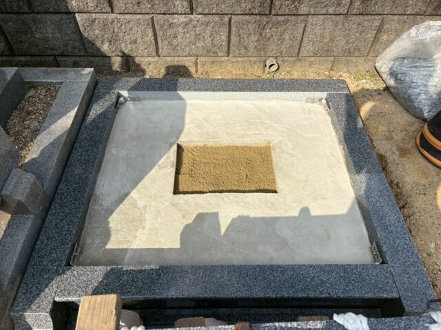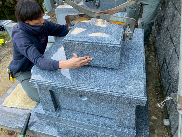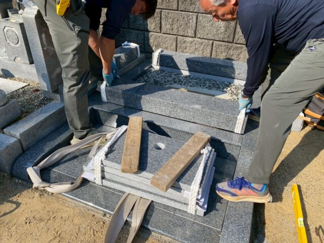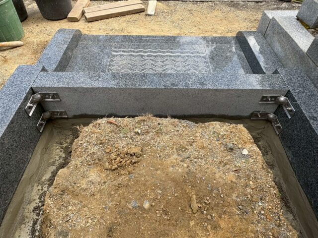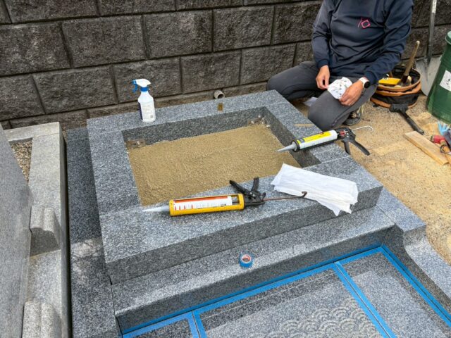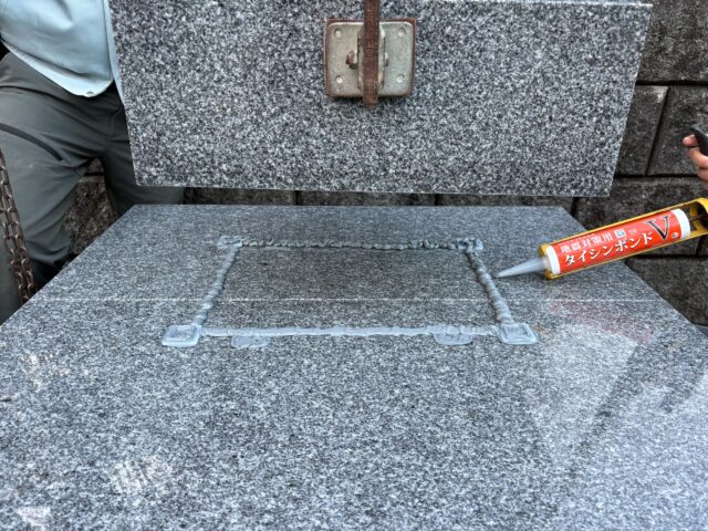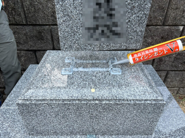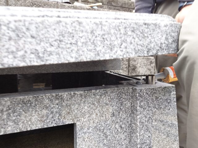 納骨堂-地伏石据付(接合部に耐震ボンド塗布)