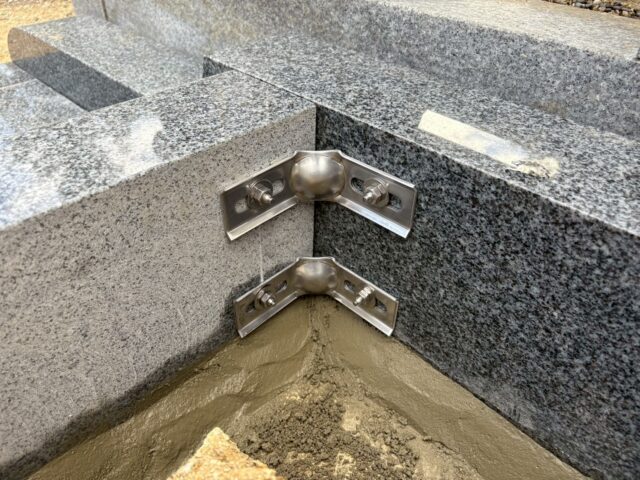 舞台石据付-耐震ボンド施工-ズレ外れ防止の芯棒入れ加工