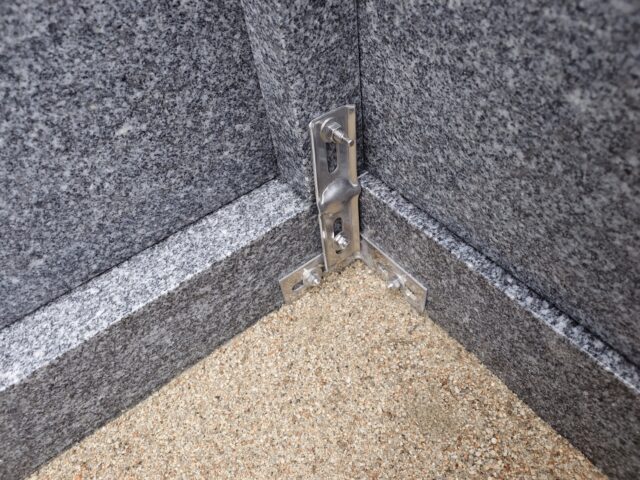 納骨堂-柱石・壁石据付(接合部に耐震ボンド塗布)