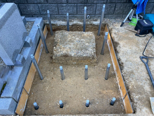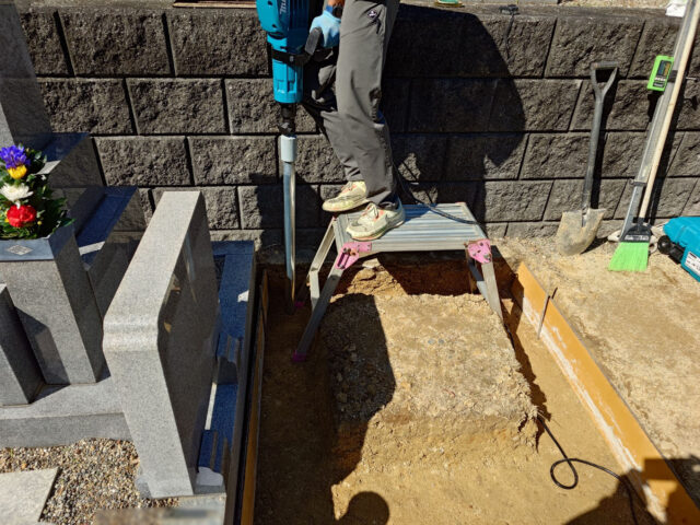 ここから基礎工事・外柵工事・石碑工事と日にちをしっかりとかけて進めていきます。