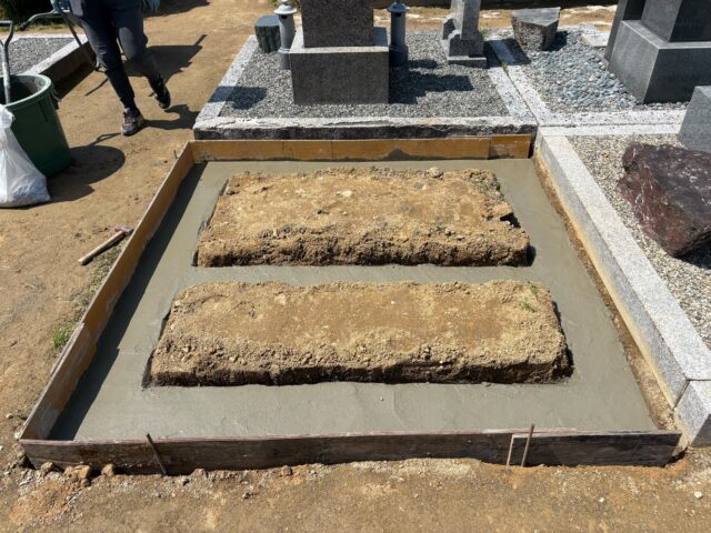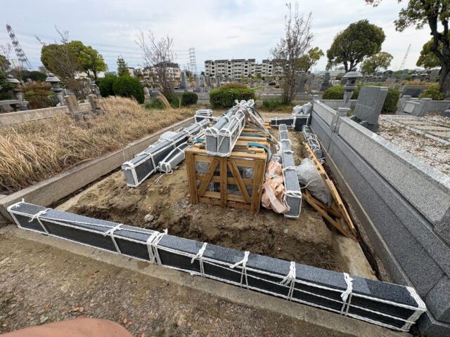 それぞれの霊園で、まずは基礎工事から進めさせていただいています。
